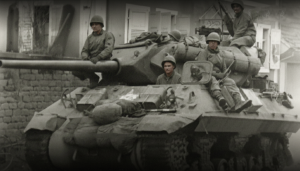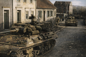 15 März 1945  US-Panzer rücken  über die obere Hauptstrasse in Ensheim ein
