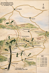 In der Nacht vom 14. auf den 15. März 1945 setzten die US-Truppen zum Großangriff an. Die 63. US-Infanteriedivision unter Generalmajor Louis E. Hibbs hatte das strategische Ziel, den Westwall zu durchbrechen, um Saarbrücken  von Osten her in die Zange zu nehmen.